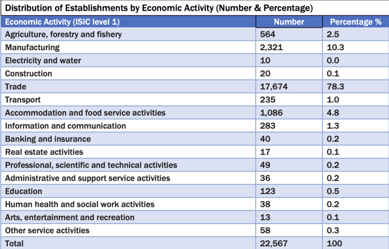 The NEEC collated comprehensive data on business characteristics, including industry classification (for example manufacturing, trade, services), number and type of workers (hired vs non-hired), location data, legal status, ownership, turnover classes and other business-demography information. The methodology and full findings are detailed in the main report; this release provides selected highlights and a link to the richer dataset.