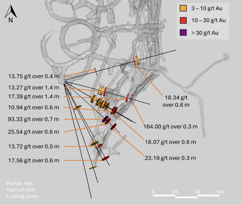 Lion One reported a headline intercept of 728.56 grams per tonne (g/t) of gold over 0.7 metres, located about 25 metres below current underground development. Other notable results include 279 g/t over 0.3 metres, 189.99 g/t over 0.3 metres, and 164 g/t over 0.3 metres.